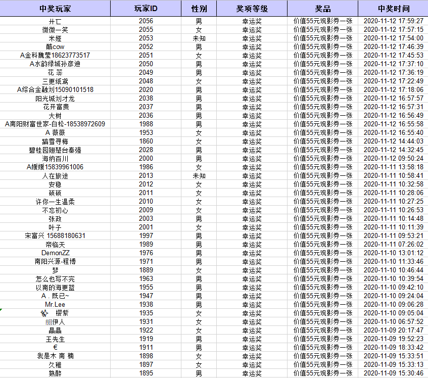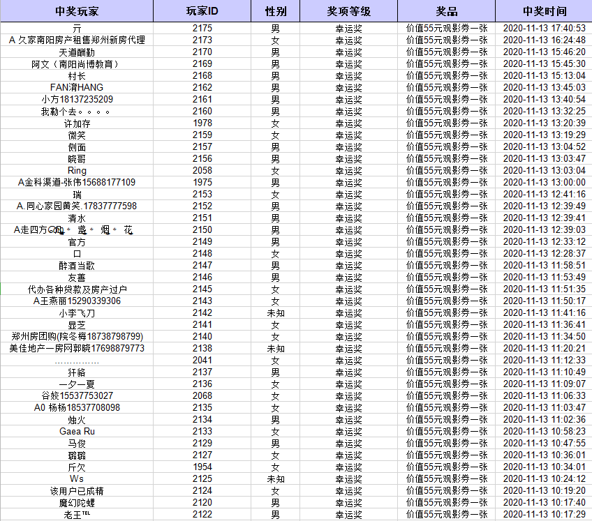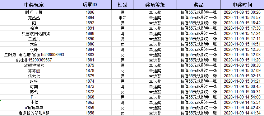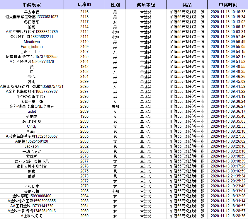 【免费观影票 获奖名单】