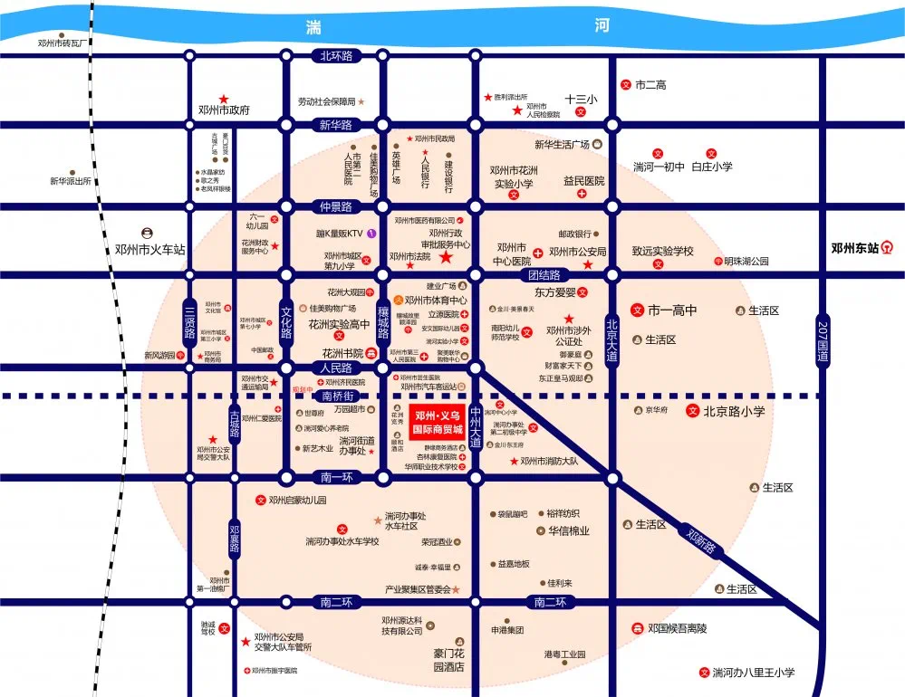 邓州·义乌国际商贸城位于中州大道与人民路新老城区的交汇处,紧邻中州大道汽车站(公交站、长途客运站),公交车可以直通邓州高铁东站,郑万高铁去年已经开通郑州至襄阳段,无缝对接城市对外交通,多条城乡班车、公交线路、长途客运站都在附近途经停靠,对外交通十分便捷,形成了贯穿东西南北方向的财富大动脉!