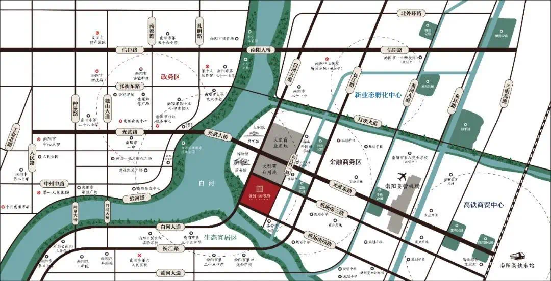 营销中心:南阳·三馆一院核芯区·长江西一路与机场南三路口西北角