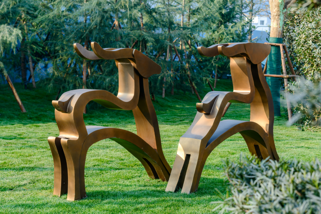 沿湖还有各色雕塑小品相映成趣