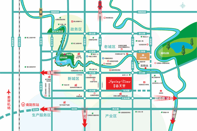 社旗紧抓机遇,规划“西进南拓”战略。社旗南部依托政府扶持之外,南阳高铁东站的开通、S228快速通道的通车,给未来的发展带来极大的机遇!加速了南部产业集聚区势不可挡的发展之势。