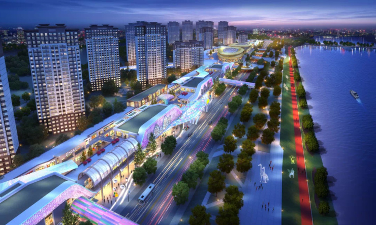 建控江山汇不仅在商业街内部设立有双首层和多首层以及连廊天桥,更在商业街与沿河景观带之间设立2座空中观光天桥,1座空中栀子花形广场,形成3座空中天桥与滨河景观带优质链接,构建空中观光街区。未来拾阶而上,漫步在江山汇的观光步道,目之所及处,繁华的商业与自然雅趣相得益彰。