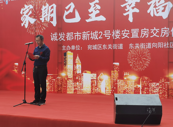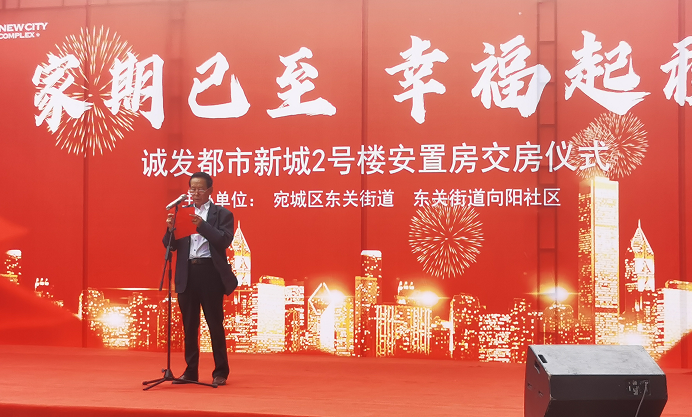 5月06日上午,诚发·都市新城的业主终于迎来盛大交付的喜庆时刻。现场一片喜气洋洋,宛城区人大常委会主任李培彦&东关街道办事处书记马炜致辞分别致辞:安置房建设是关乎老百姓切身利益的一项惠民工程、民心工程。
