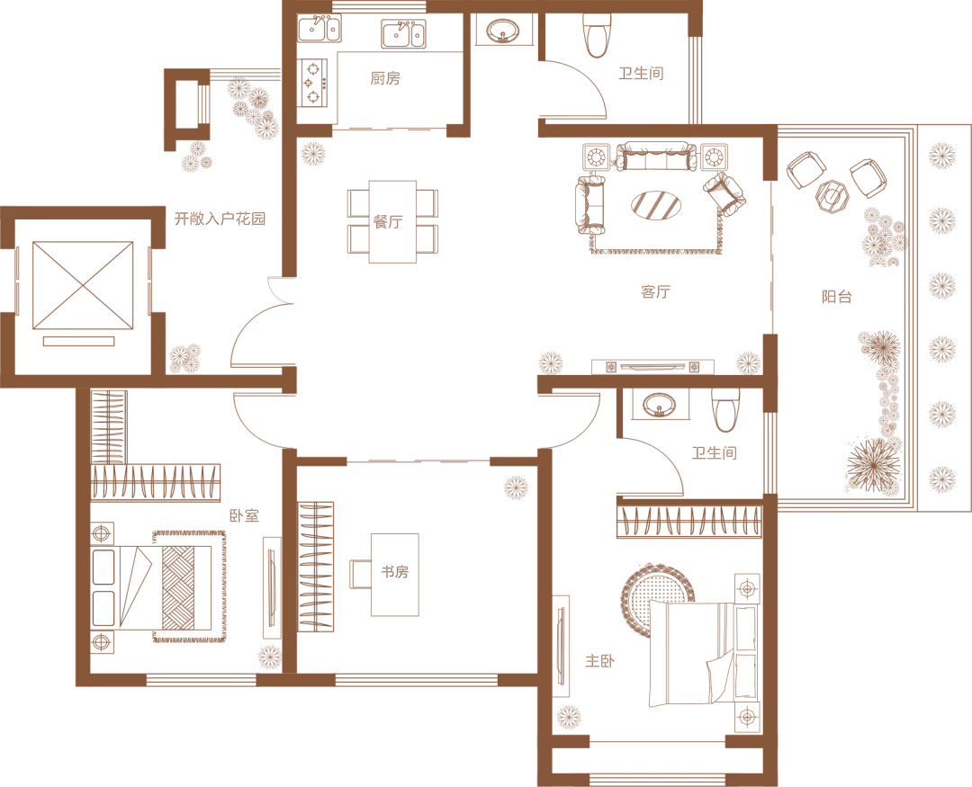 大面宽阳光客厅,格局方正严谨,彰显大家风范