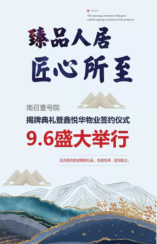 归家之门 中国人的仪式感,从古至今都是由“门”开始 门是宅子的外檐装修,又是独立的一方建筑 南召壹号院匠造新中式大门,营造高规格归家仪式感 宽,则大大方方,高,则堂堂正正 用简单的线条和体块,展示正气大方的自我形象 构筑提振精神的强大中式气场 南召壹号院不但追求前期的房屋品质,更注重后期的物业服务。