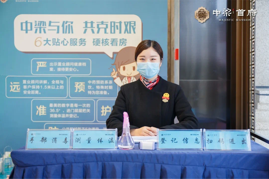 中梁·首府将在营销中心入口处设立安全关卡,进入营销中心的人员,必须佩戴口罩,经过四大防疫步骤方可进入营销中心。