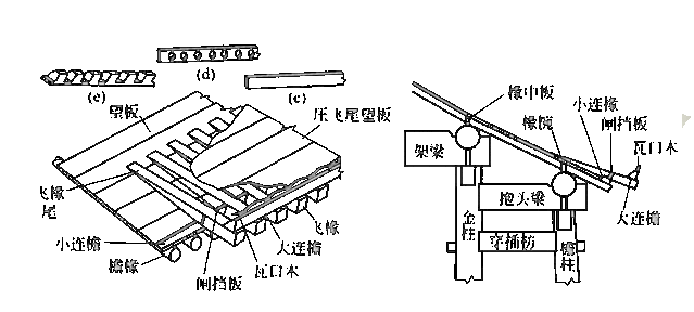 在歇山顶、悬山顶、硬山顶的建筑上自正脊两端沿着前后坡向下,在攒尖顶中自宝顶至屋檐转角处。