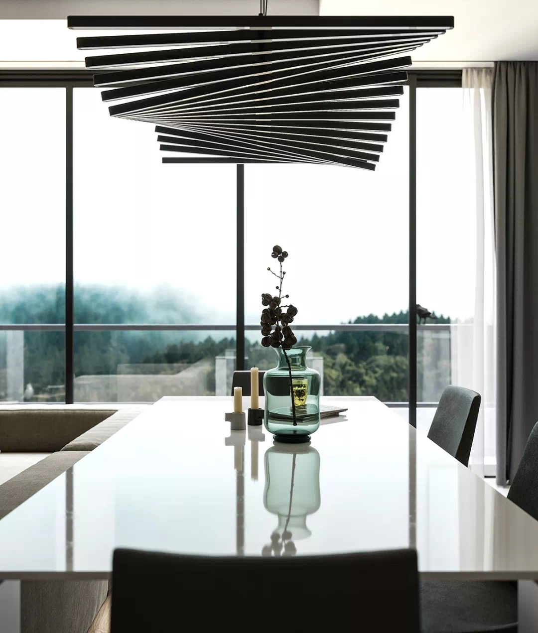餐桌上方的吊灯非常吸晴